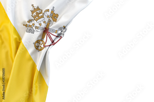 Flag of Vatican in the corner on white background. Isolated. 3D Rendering