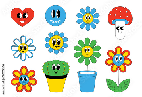 Groovy Hippie Sticker Retro Emoji Retro Pop Art Vector Vintage Illustration.