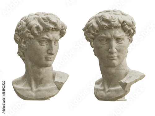 Bust of Michelangelo’s David statue isolated on transparent background. 3D rendering