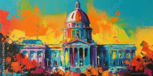 bright painting of California State Capitol building in Sacramento, CA (generative ai content)