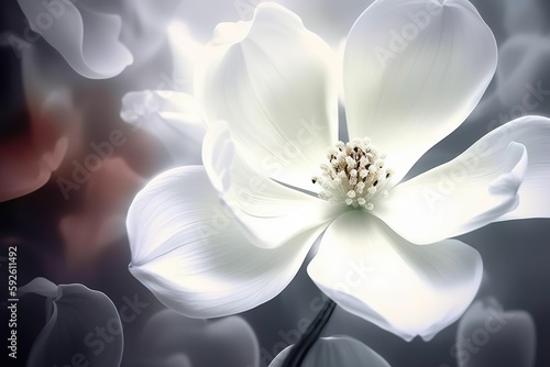 Abbildung einer abstrakten, weißen Blume in voller Blüte (Generative AI)