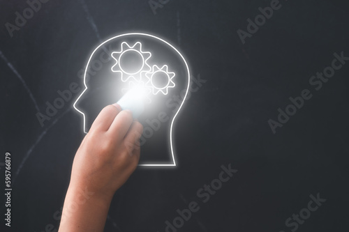 inspiration idea concept, kid hand drawing icon on blackboard, brainstorming new idea and technology