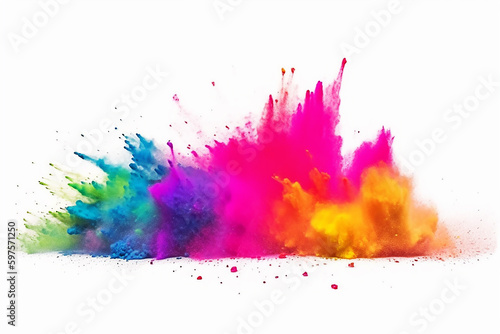 Borda do quadro com espaço de cópia de arco-íris colorido holi pintura cor explosão em pó isolado fundo branco