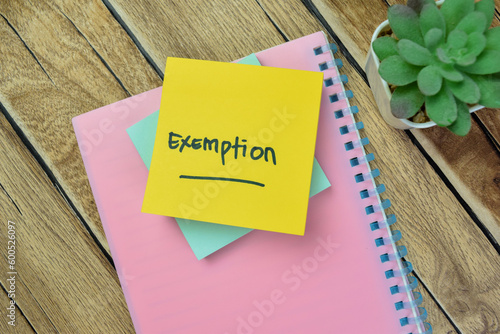 Concept of Exemption write on sticky notes isolated on Wooden Table.