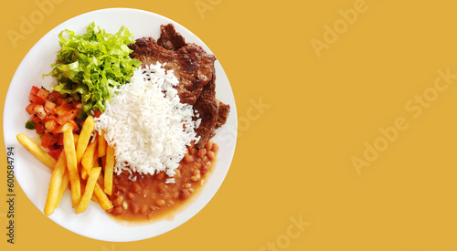 Traditional Brazilian meal named prato feito. Business, presentation with space to write text. Ready template