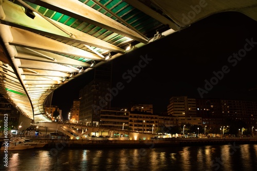 Puente de Zubi Zuri de noche ciudad de Bilbao.