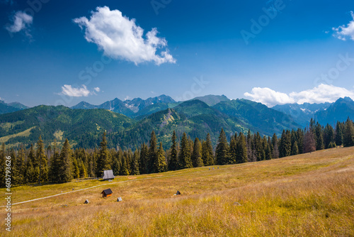 Bacówka Stanisława Rychtarczyka Rusinowa Polana. Piękny widok na wysokie góry.