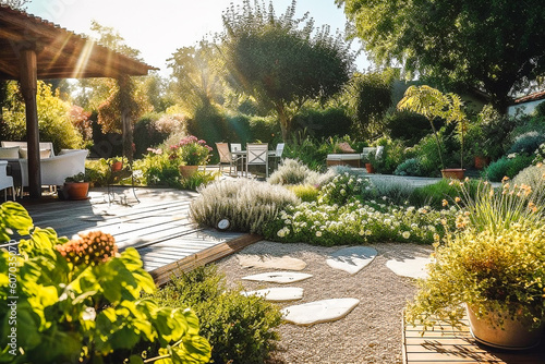 Jardin paysager, jardin d'agrément , avec allée - Générative iA