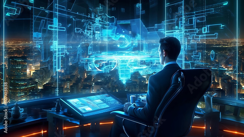 Generated with AI - Businessmen in the Technological Future: Securing Money, Technology, and Trust through Cybersecurity