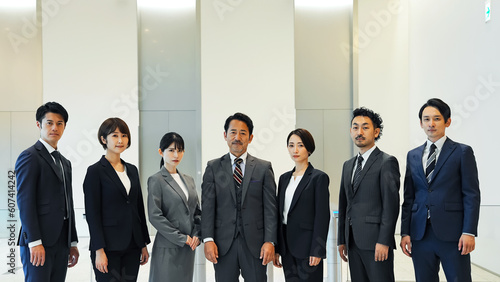 オフィスに整列する大勢のビジネスパーソンのグループ