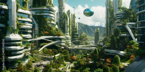 Moderne Stadtplanung in der Zukunft, futuristische neue Stadt mit vorbildlicher Architektur, ai generativ