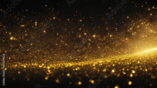 Digital Gold Particles Wave and light abstract background with shining floor particle stars dust. Futuristic glittering Luxury golden sparkling on black background, generative ai