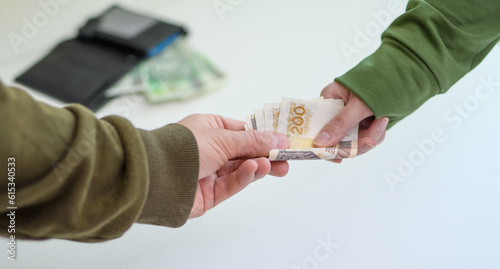 Płacić gotówką, przekazywane pieniądze z ręki do ręki pln