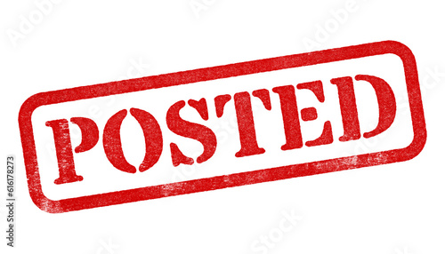 Posted red rubber stamp isolated on transparent background with distressed texture effect