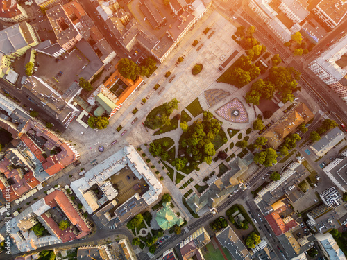 downtown plac litewski, city square and park at sunset, Lublin, Poland