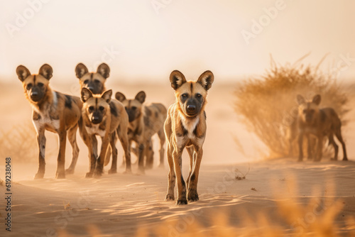 hyenas in the savannah, wild and untamed nature. strong jaws, and characteristic licking lips are highlighted