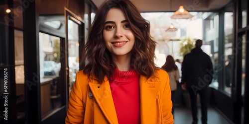 smiling business woman, office, business