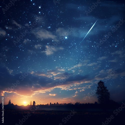 The captivating full moon glows brilliantly in the night sky, casting its gentle light upon a backdrop of twinkling stars, creating a breathtaking and ethereal scene that inspires wonder and awe