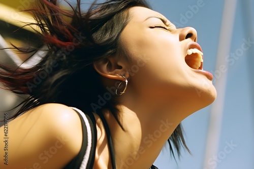 夏フェスで熱狂する女性 with generative ai