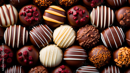 Assorted chocolates, luxury chocolate bonbons, close up. Food Background. Generative AI