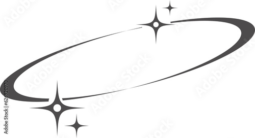 Aesthetic orbit with stars. Minimal shape in lines with sparkles. Abstract modern geometric boho element. Y2k