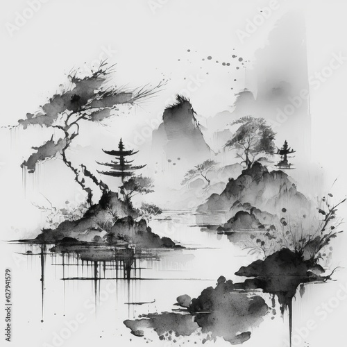 Chinese ink watercolor painting, AI generated