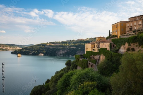 View on lake in Castel Gandolfo, Rome, Italy, Generative AI
