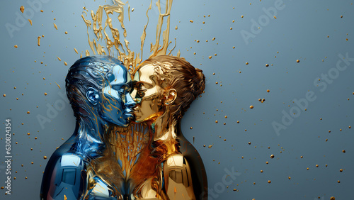 Statue aus Metall von Köpfen eines Liebespaar beim sinnlichen Küssen, ai generativ
