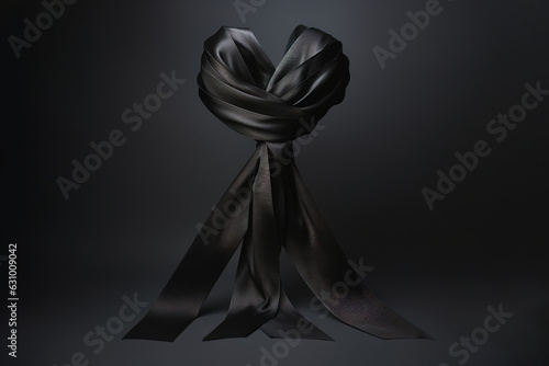 Black ribbon and space for text on dark background top view heart generative ai