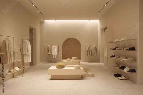 A luxury boutique store with modern interior design, creating a trendy retail space that captivates with stylish clothing.