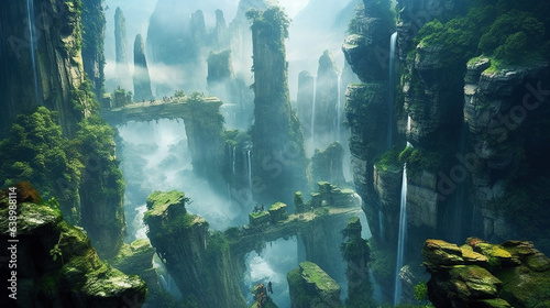 Aerial View of Misty Zhangjiajie Jiangnan Mountains Landscape AI Generative