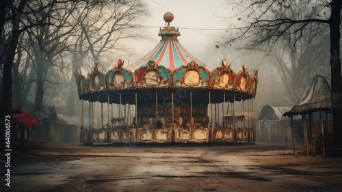 Creepy abandoned carnival with vintage carousel. cool wallpaper