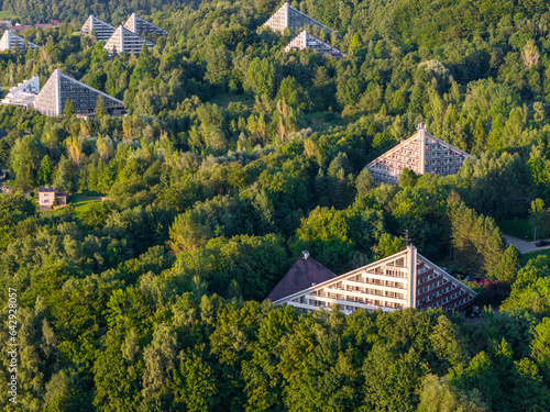 Ustron Aerial View. Scenery of the town and health resort in Ustron on the hills of the Silesian Beskids. Poland.