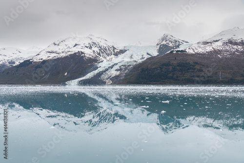 A small Tidal Glacier reflected in the calm waters of College Fjord, Prince William Sound, Alaska, USA