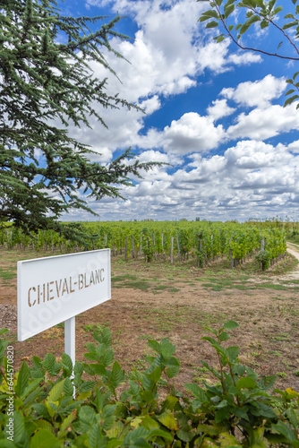 Typical vineyards (1er Grand Cru Classe A) near Chateau Cheval Blanc, Saint-Emilion, Aquitaine, France