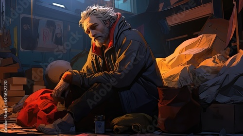 Poverty and homelessness digital illustration, computer-generated to show wealth inequality and the reality of being poor.