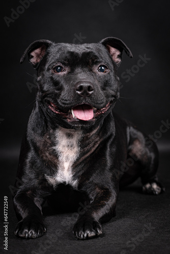 portrait of the black Staffordshire Bull Terrier Dog