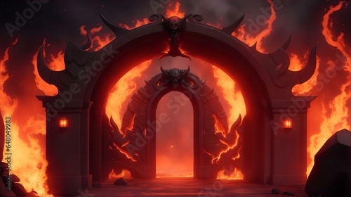 地獄の門、燃え盛る炎|Gates of hell, blazing flames. Generative AI