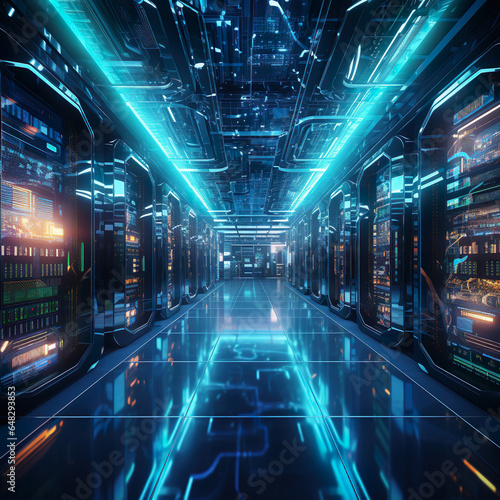 Highly advanced high tech datacenter backend databse facility, usable for cloud storage and data backup