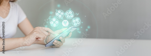 Woman uses smartphone for digital healthcare and healthy lifestyle, Digital Tools for a Balanced Lifestyle