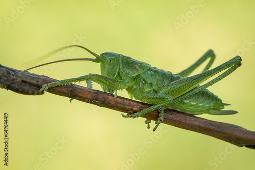 Piękny zielony konik polny na wiosennej łące