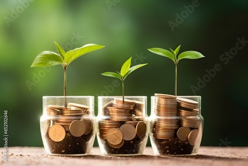 ガラス瓶に入った沢山のコイン コツコツ積立のイメージ