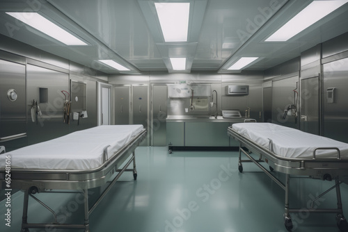 Quiet atmosphere of an empty morgue