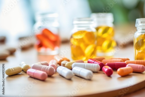 macro shot of multivitamins and mineral supplements on a table