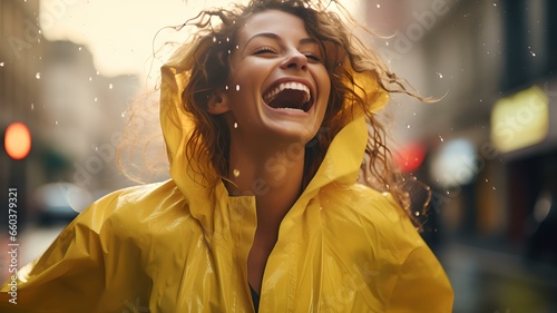 Glückliche Frau im Regen: Das Leben genießen, wie es kommt