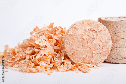 Sägespäne und Hobelspäne als Brikett / Holzbrikett verpresst