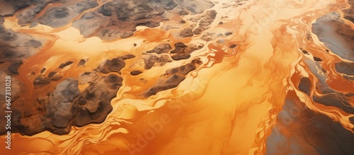 Industrial copper mine and plant pollute environment with acid rivers and contaminated orange soil Aerial view