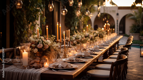 Wedding outdoor dinner table elegant setting with flowers rustic fete party outside select long banquet dining tablescape