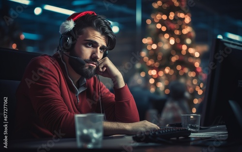 operatore call center stanco e triste a natale