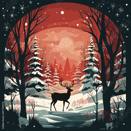 Festive evening, wildlife, stars, moon, nocturnal nature, Christmas tree, mammal.